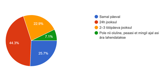 Totaalne tuumapomm terves uuringus. Kui aastal 2026 lepib 44% ühistutest sellega, et tema päringule vastatakse 24 tunni jooksul ning ligi 23% jaoks pole probleem 2-3 päeva oodata, siis on see tugev märk sellest, et tihtipeale loiud korrashoiufirmad on ühistute jaoks endale mugava „oota, meil on teiste asjadega kiire“ suhtumise ära normaliseerinud.